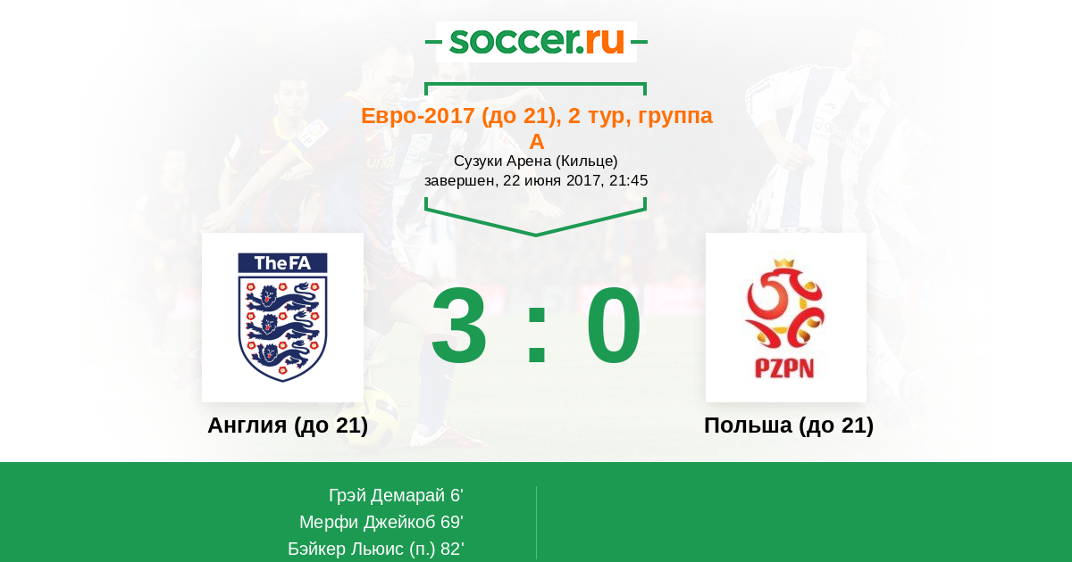 Новости матча Англия (до 21) против Польша (до 21)
