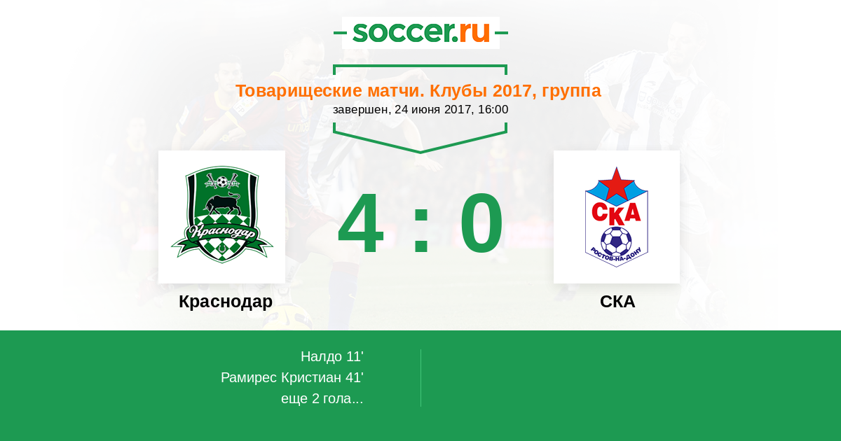 Новости матча Краснодар против СКА