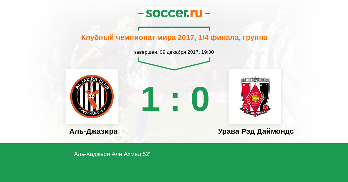 Новости матча Аль-Джазира против Урава Рэд Даймондс