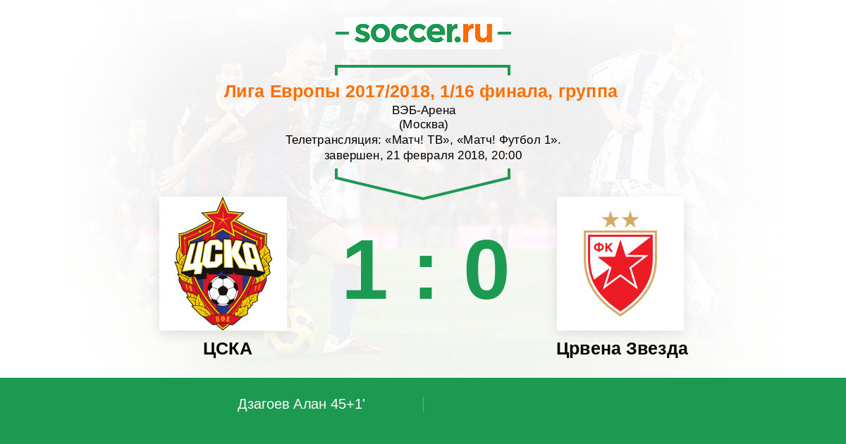 Новости матча ЦСКА против Црвена Звезда