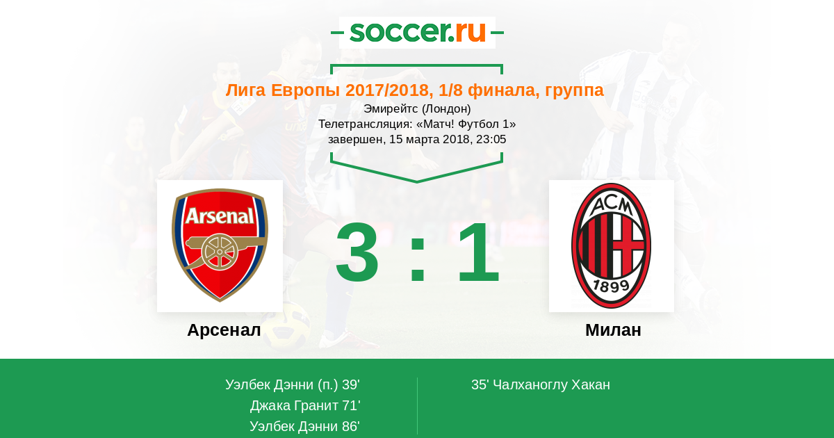 Новости матча Арсенал против Милан
