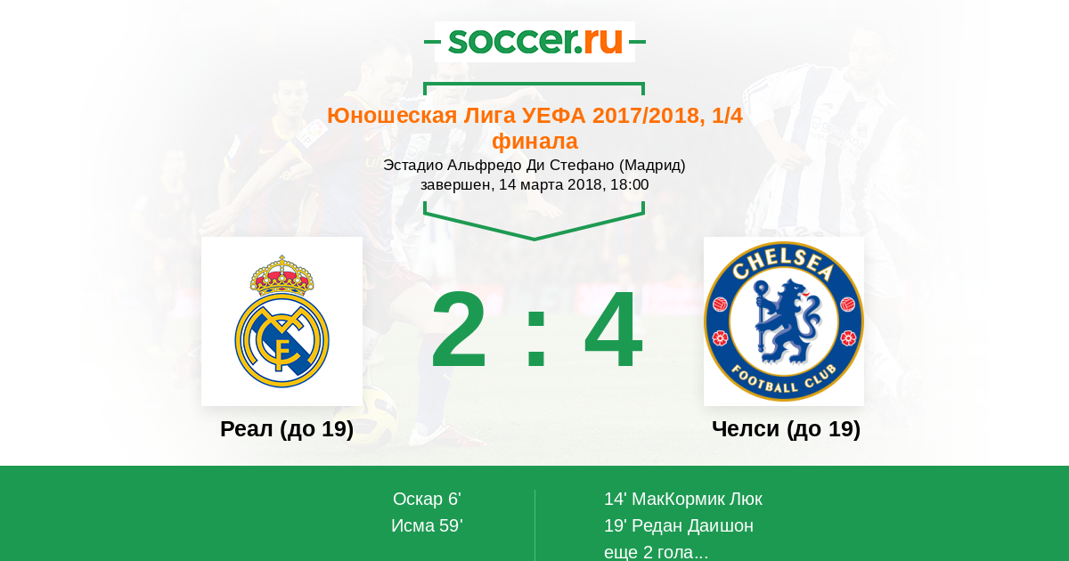 Новости матча Реал (до 19) против Челси (до 19)