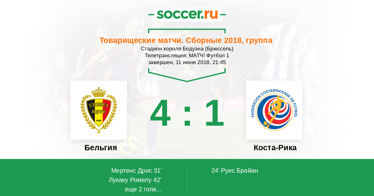 Новости матча Бельгия против Коста-Рика