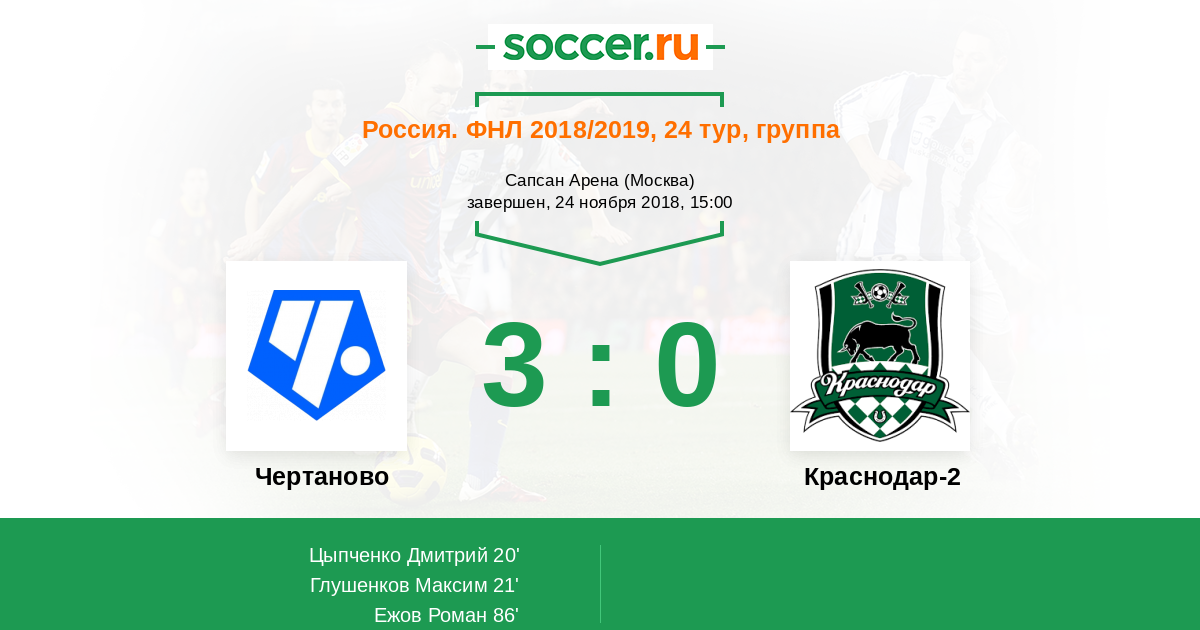 Новости матча Чертаново против Краснодар-2