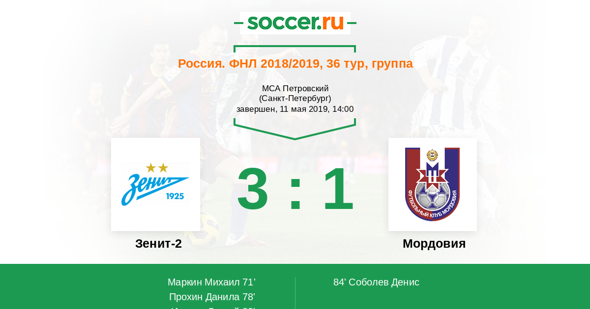 Новости матча Зенит-2 против Мордовия