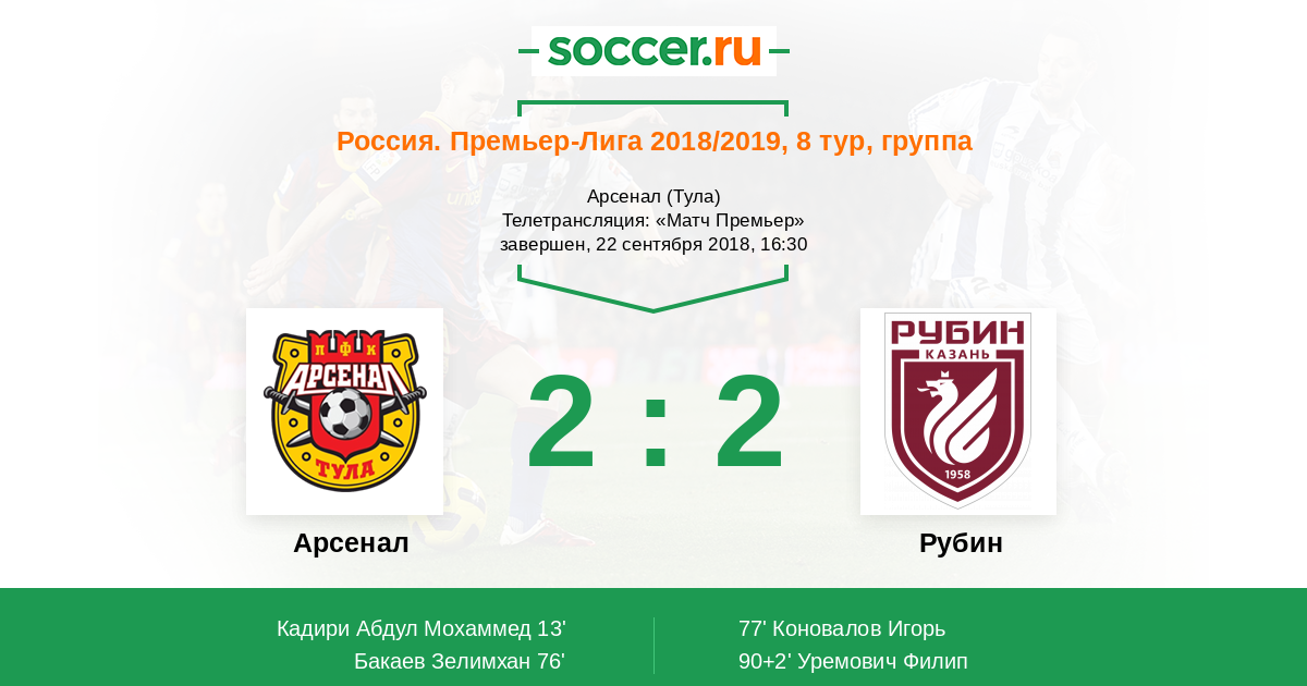 Новости матча Арсенал против Рубин