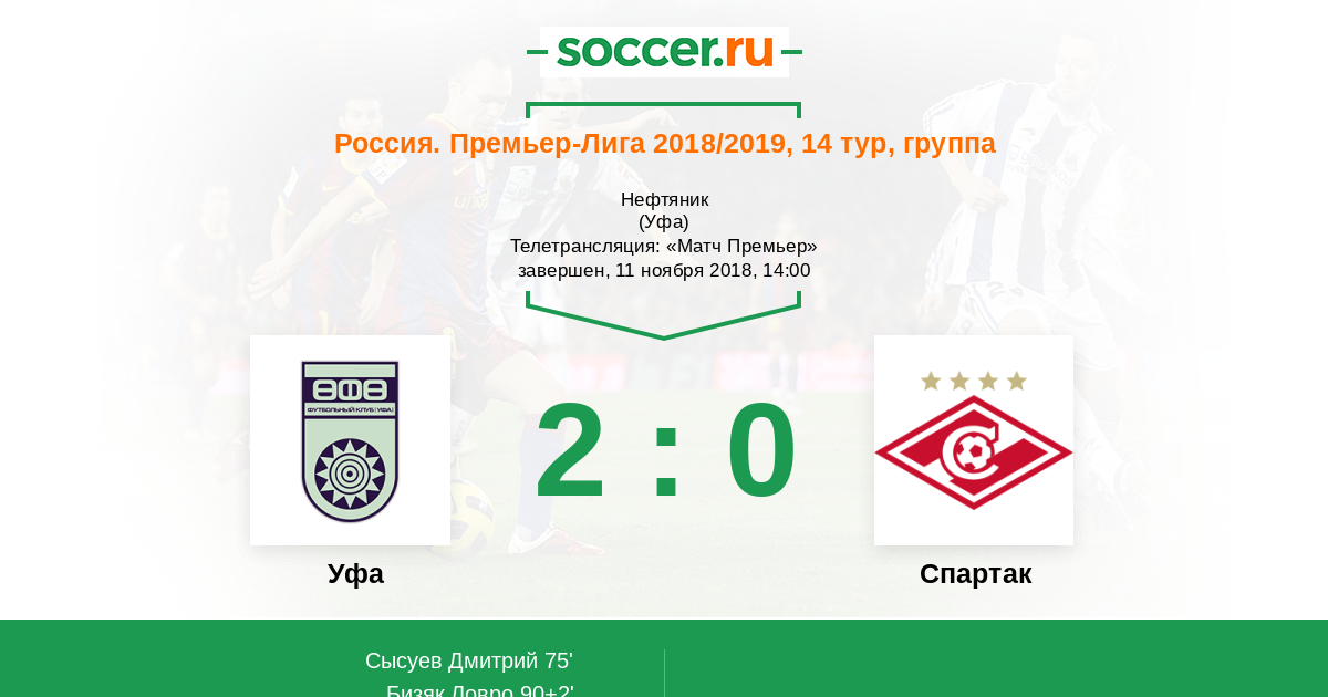 Новости матча Уфа против Спартак