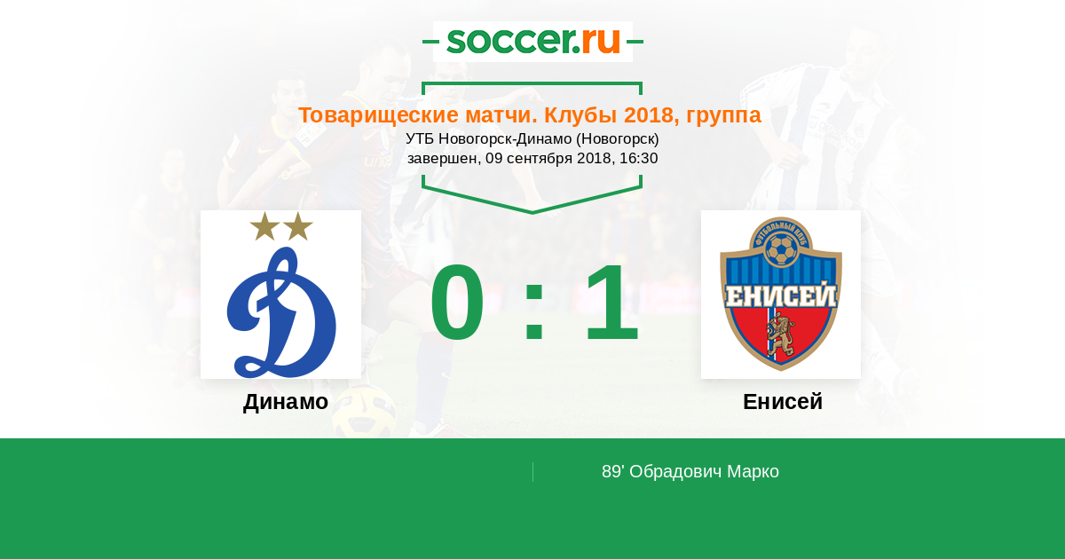 Новости матча Динамо против Енисей