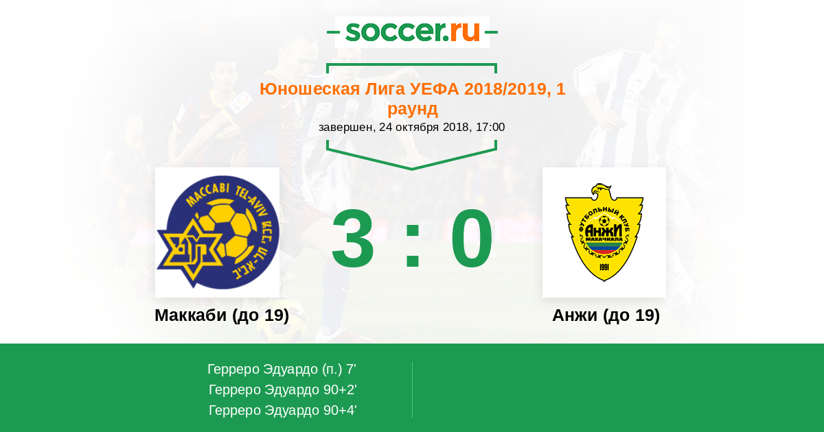 Новости матча Маккаби (до 19) против Анжи (до 19)