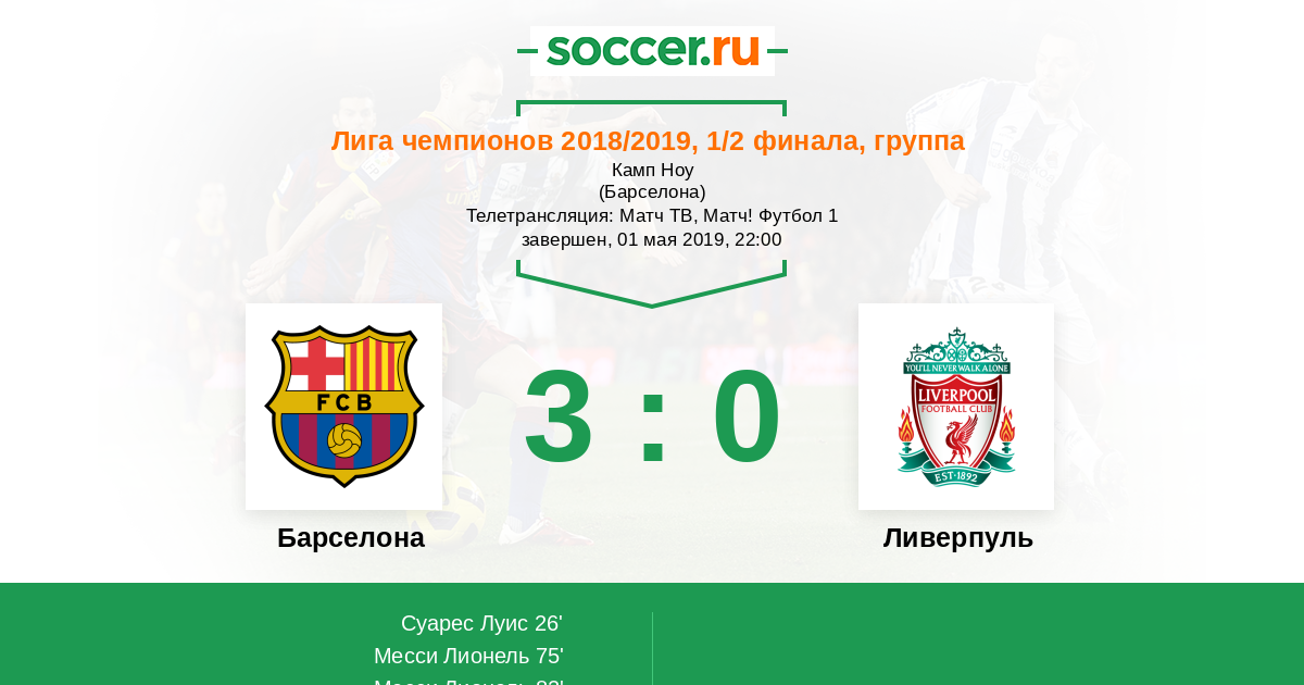 Назван лучший гол Лиги чемпионов-2018/19