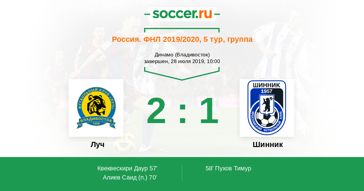 Новости матча Луч против Шинник
