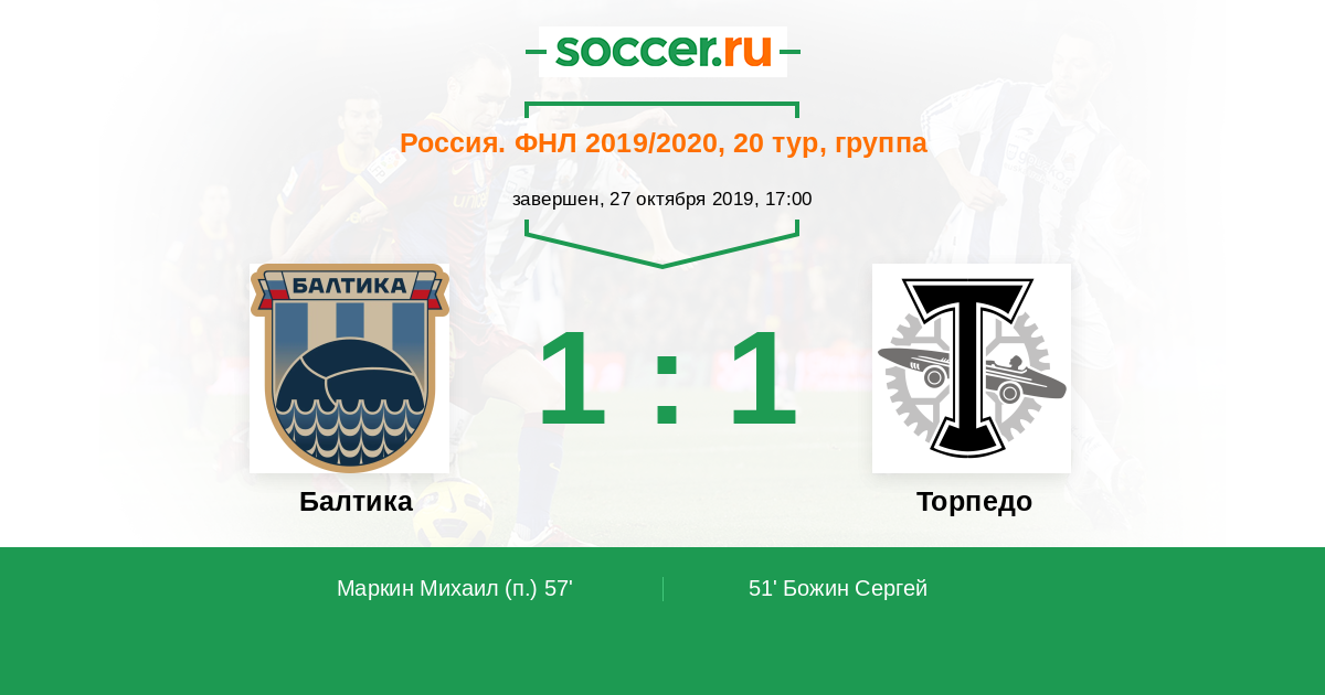 Новости матча Балтика против Торпедо