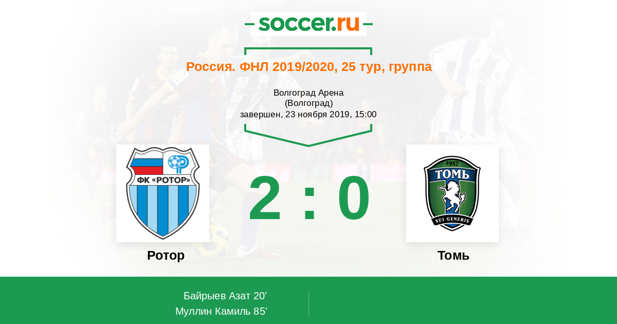 Новости матча Ротор против Томь