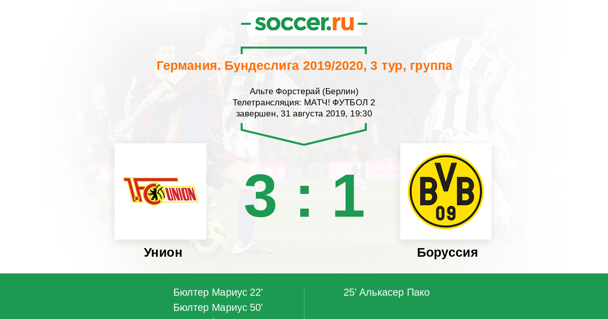 Новости матча Унион против Боруссия