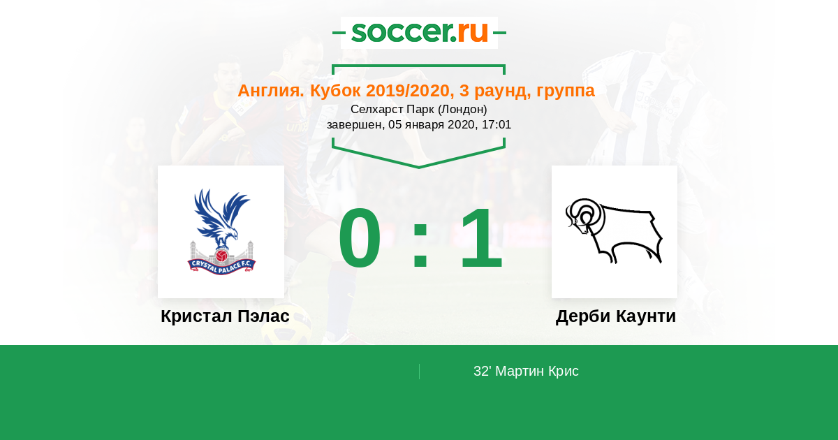Новости матча Кристал Пэлас против Дерби Каунти