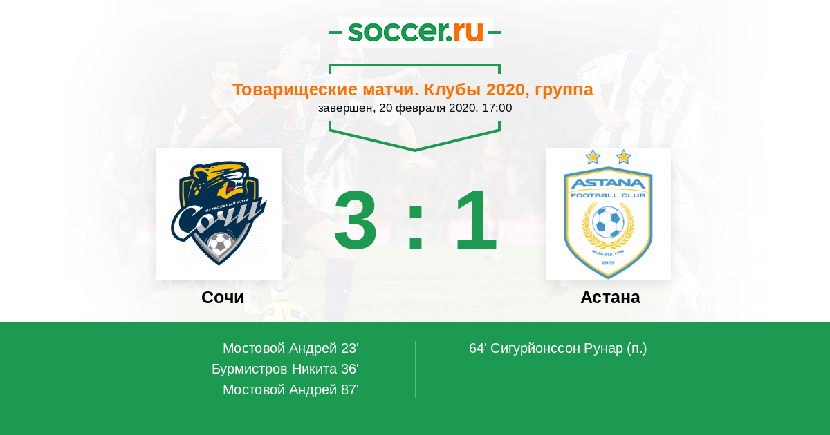 Новости матча Сочи против Астана