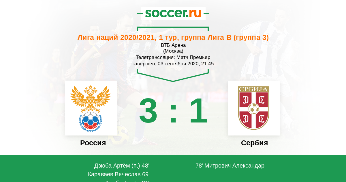 За сборную России в этом матче забивали одни зенитчики) Рад за Славу Караваева! С дебютным его голом) Ну и Дзюба - молодчик! Да, ВТБ -Арена это счастливая арена для нашей сборной, получается. Всех преданных болельщиков сборной России с уверенной победой!