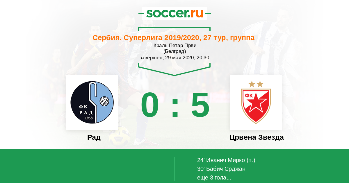 Новости матча Рад против Црвена Звезда