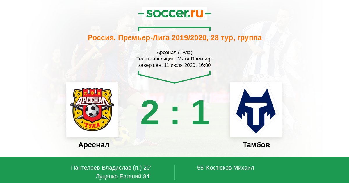 Новости матча Арсенал против Тамбов