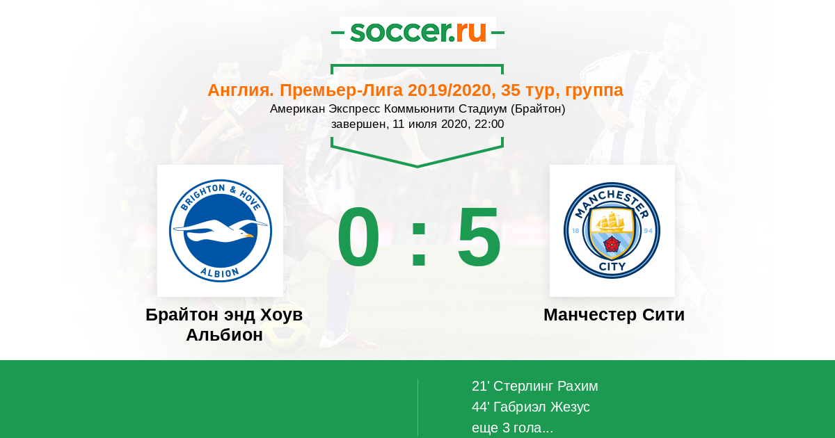 Новости матча Брайтон энд Хоув Альбион против Манчестер Сити