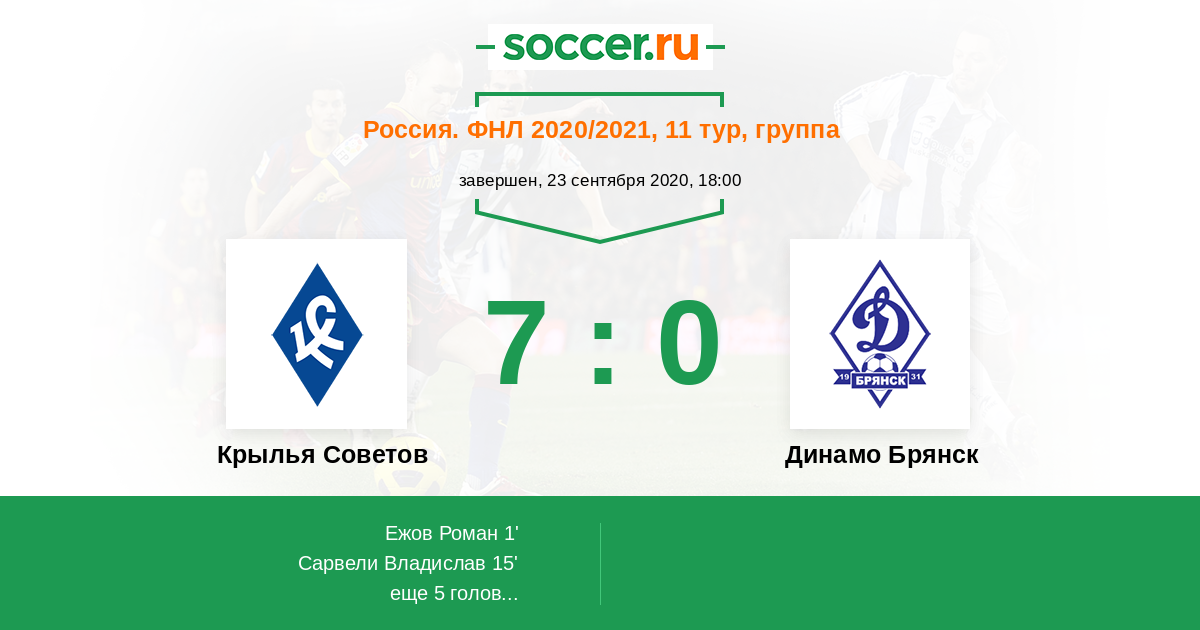 Новости матча Крылья Советов против Динамо Брянск