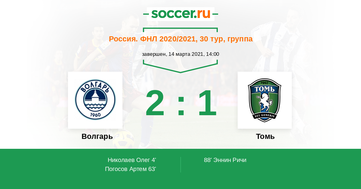 Новости матча Волгарь против Томь