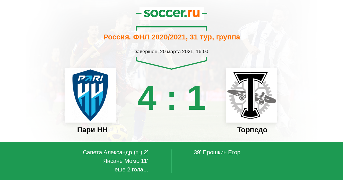 Новости матча Пари НН против Торпедо