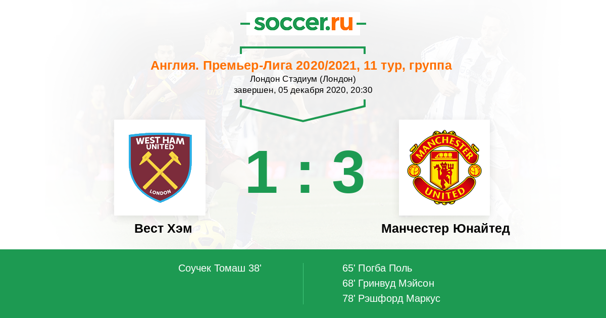Новости матча Вест Хэм против Манчестер Юнайтед