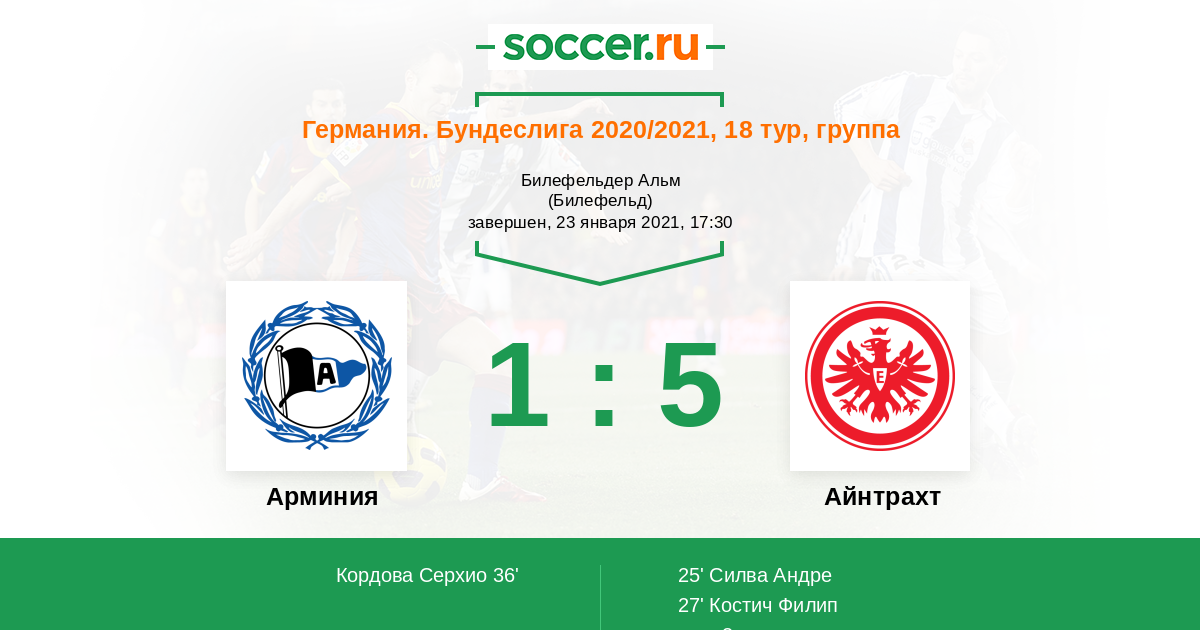 Новости матча Арминия против Айнтрахт