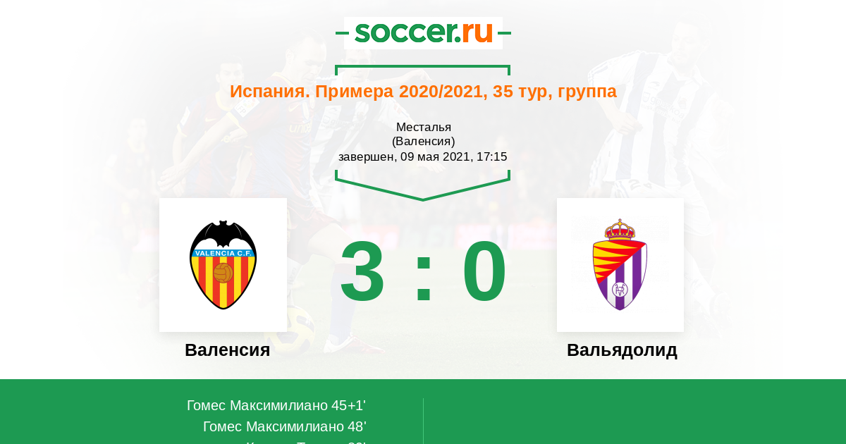 Новости матча Валенсия против Вальядолид