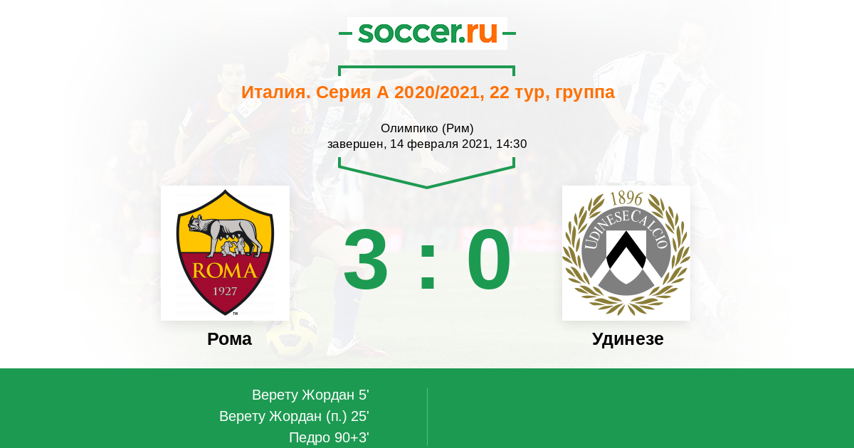Новости матча Рома против Удинезе