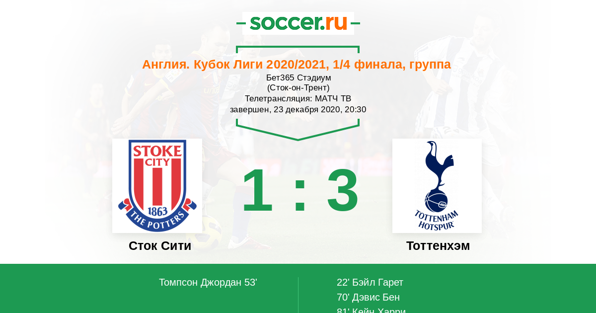 Новости матча Сток Сити против Тоттенхэм