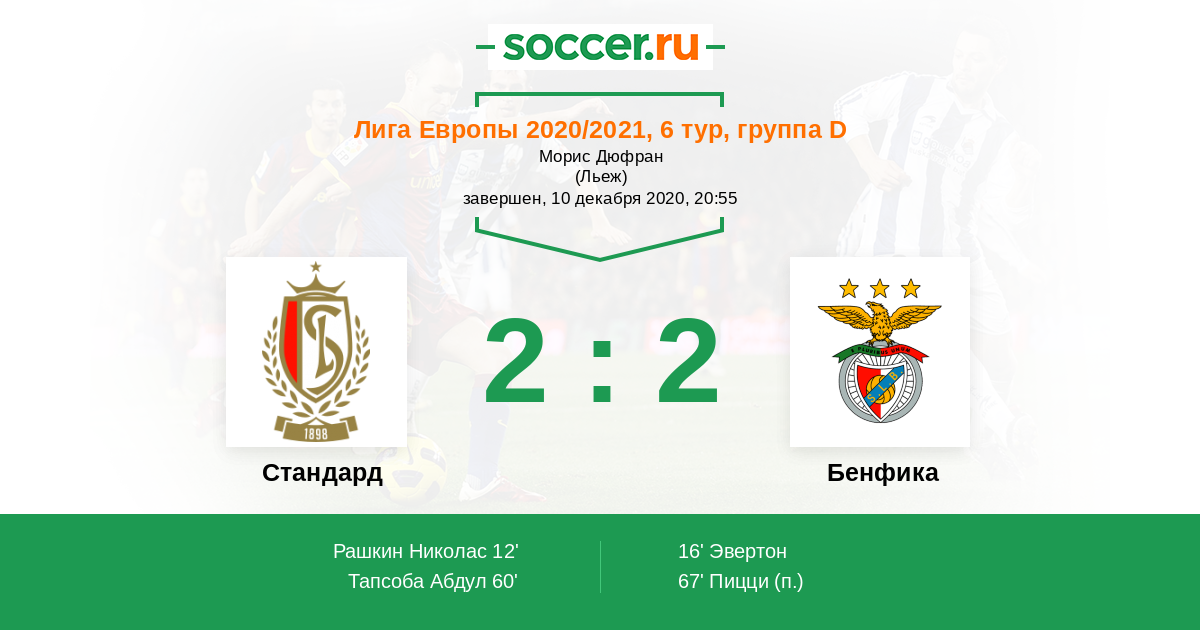 Новости матча Стандард против Бенфика
