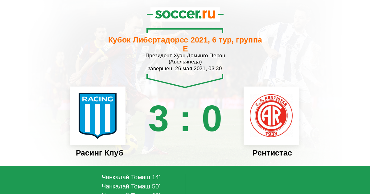 Новости матча Расинг Клуб против Рентистас