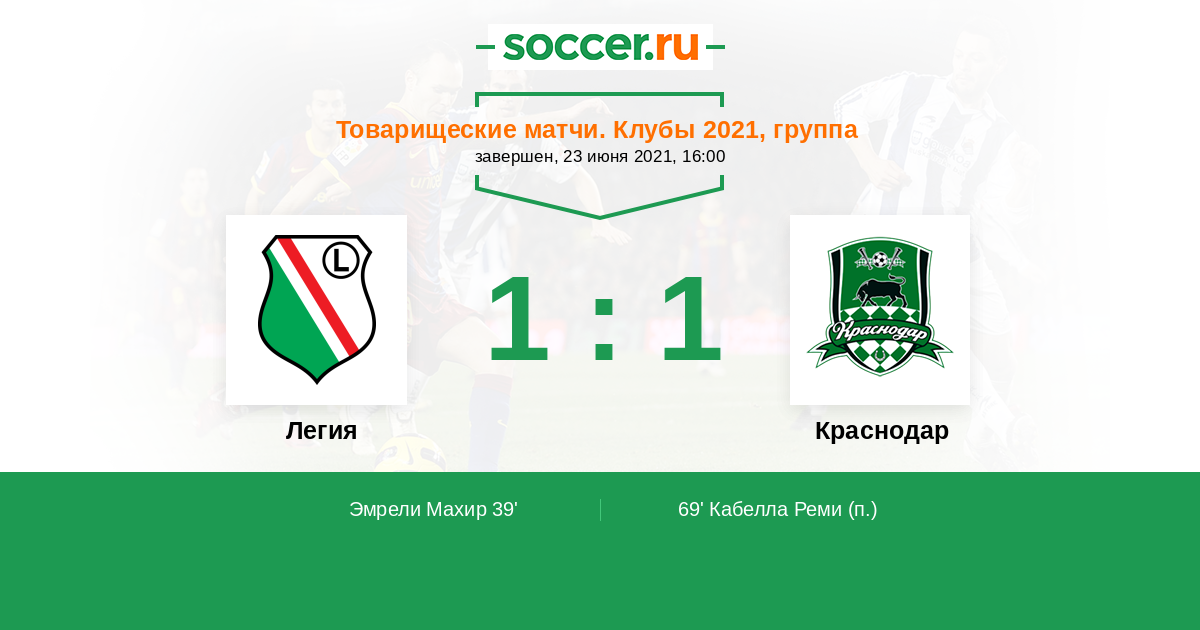 Новости матча Легия против Краснодар