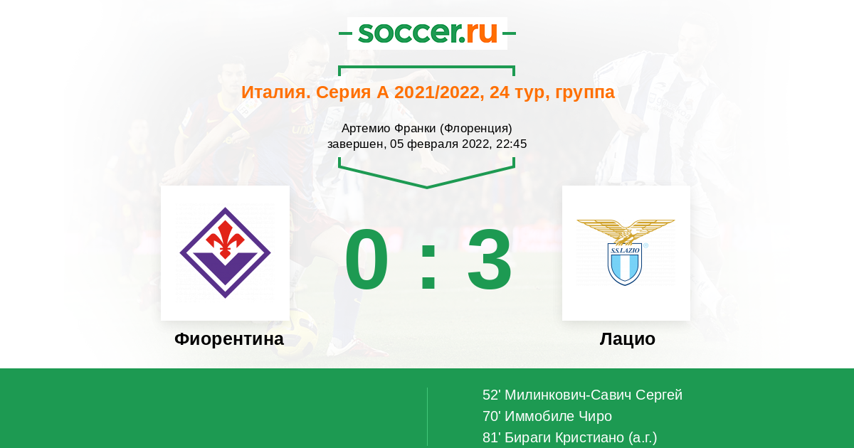 Очень интересный матч нас ожидает между командами Фиорентина и Лацио которые будут стараться одержать победу и продолжать вести борьбу за попадание в еврокубки. И этот матч должен показать на сколько они готовы чтобы добиться сегодня успеха. Прогноз тотал больше в 1-м тайме-1,5. Удачи