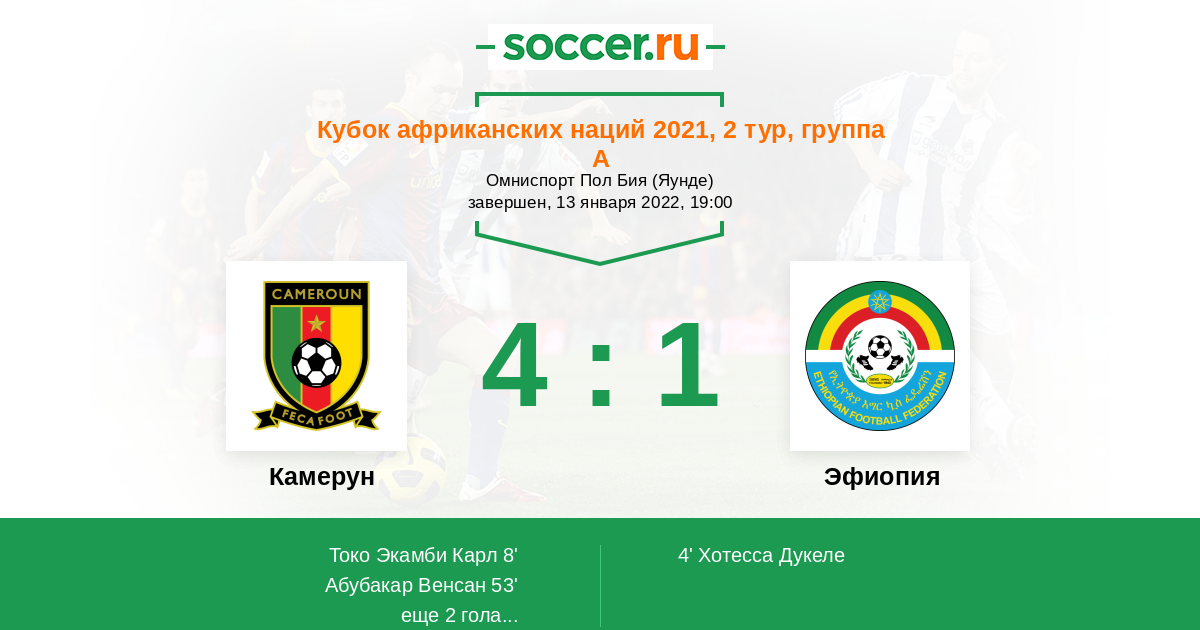 Новости матча Камерун против Эфиопия