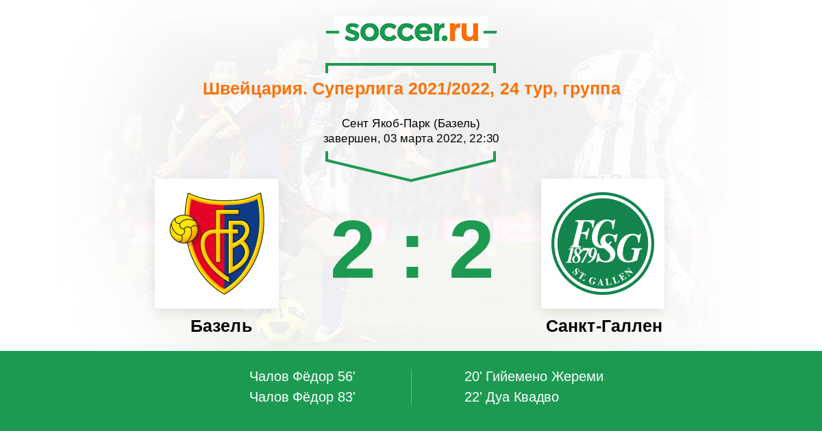 Бело-зеленые в крайнем туре дожали Грассхоперс 2-0 на своем поле, да и вообще после зимней паузы у подопечных Зайдлера 4 победы с 1 ничьей и выход в полуфинал Кубка Швейцарии. Санкт Галлен нащупал свою атакующую игру и не жалеет никого на своем пути, отправляясь в Базель с неплохими перспективами.