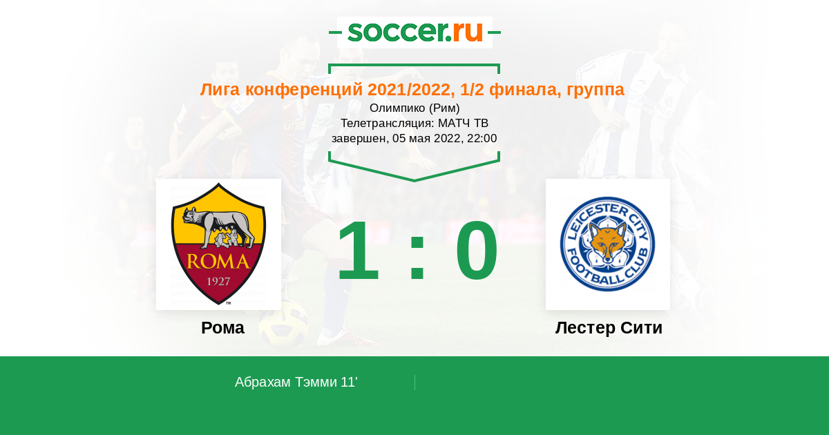 Серхио Оливейра вернулся из внутреннего запрета, в то время как Тэмми Абрахам на этот раз возглавит линию Джаллоросси. С другой стороны, войска Брендана Роджерса не смогли произвести впечатления, проиграв "Шпорам" со счетом 3:1, и, видя, что "Рома" - реальная сила, с которой нужно считаться дома, мы прогнозируем, что гости вернутся в Англию с пустыми руками. Что касается гостей, то и Джейми Варди, и Юрий Тилманс вернулись в стартовом составе, а Уилфрид Ндиди остается в послеоперационной палате.