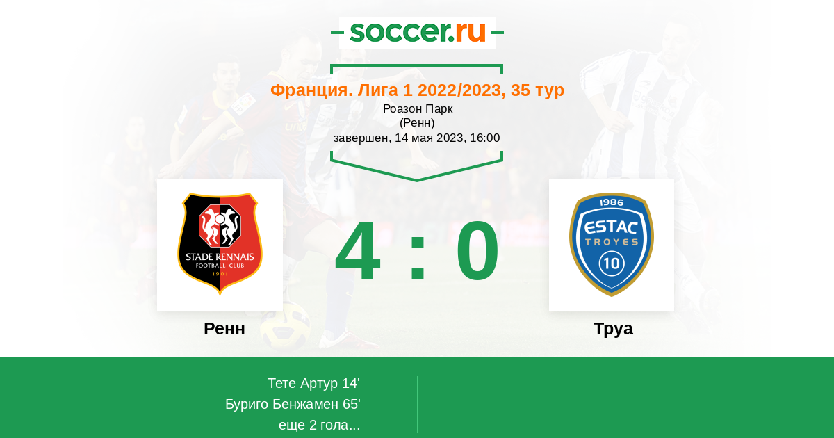 Новости матча Ренн против Труа