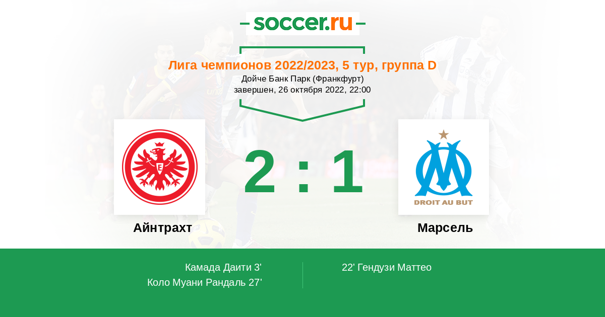 Новости матча Айнтрахт против Марсель