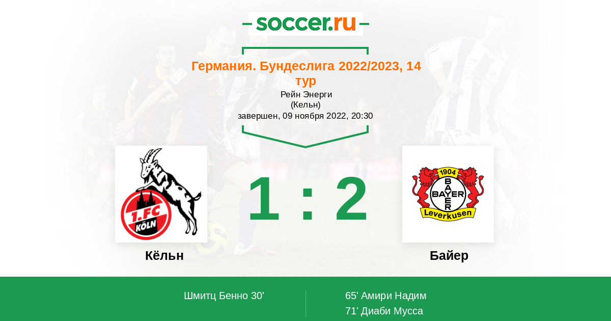 В предстоящем матче 14 - го тура немецкой Бундеслиги между командами Кёльн и Байер Леверкузен , фаворитом на победу является команда хозяев Кёльн , так как игра пройдёт в Кёльне.