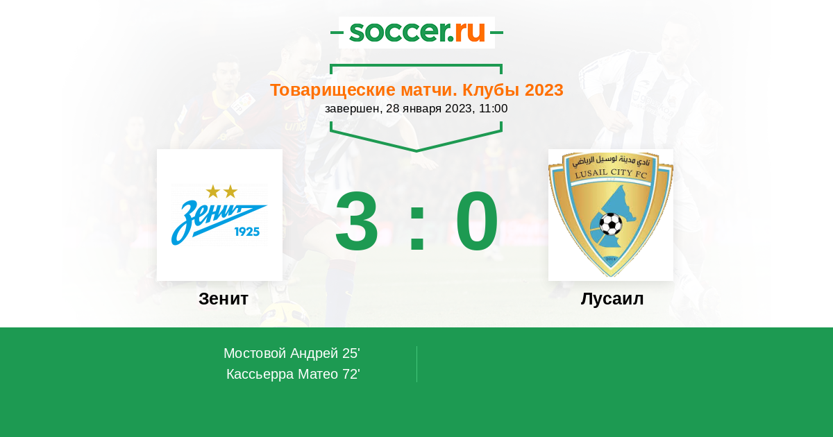 Новости матча Зенит против Лусаил