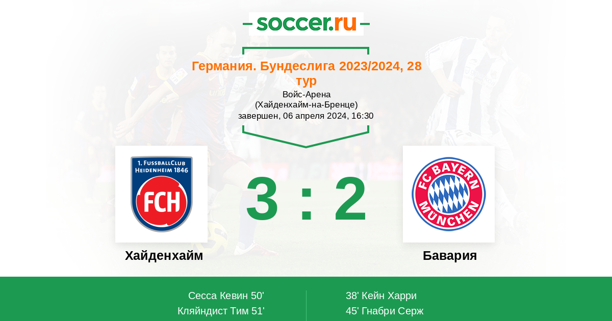 Новости матча Хайденхайм против Бавария