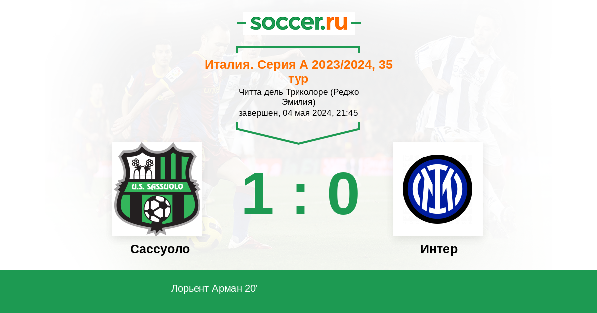 Новости матча Сассуоло против Интер
