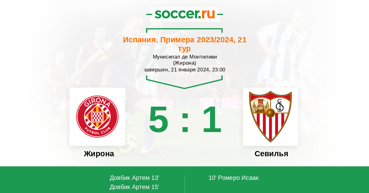 В матче испанской Примеры между командами Жирона и Севилья смею предположить победу хозяев, потому как они располагаются выше в турнирной таблице, плюс результативнее играют в атаке и надёжнее в обороне.