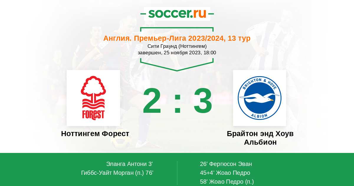 Новости матча Ноттингем Форест против Брайтон энд Хоув Альбион