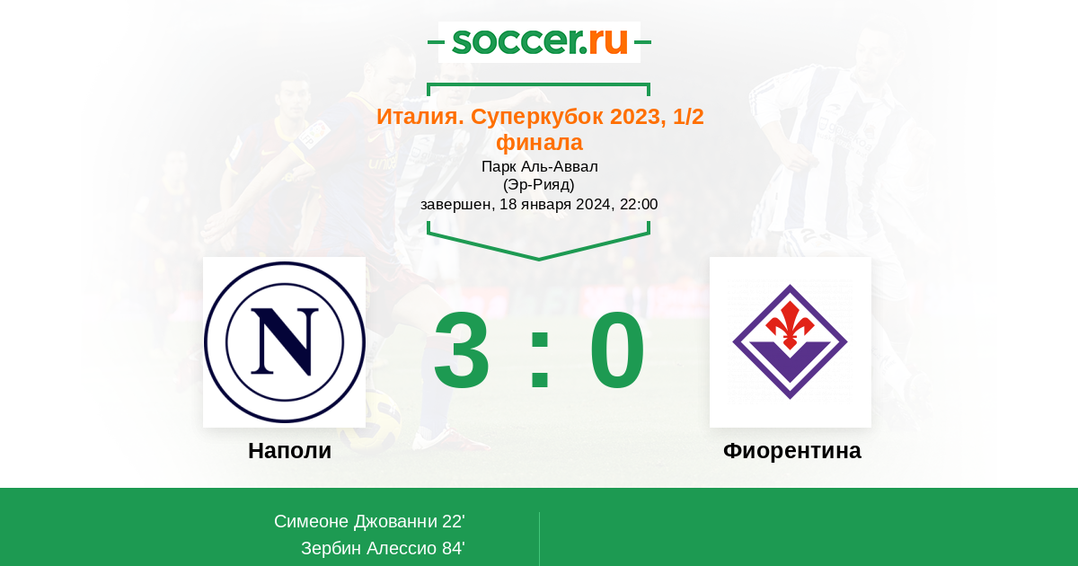 В матче 1/2 итальянского Суперкубка между командами Наполи и Фиорентина смею предположить победу гостей, потому как в составе хозяев не будет их лидера Осимхена а без него там забивать некому.