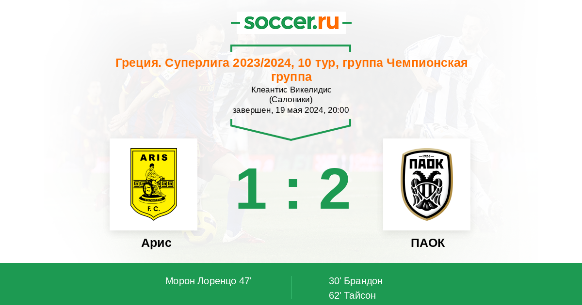 Новости матча Арис против ПАОК