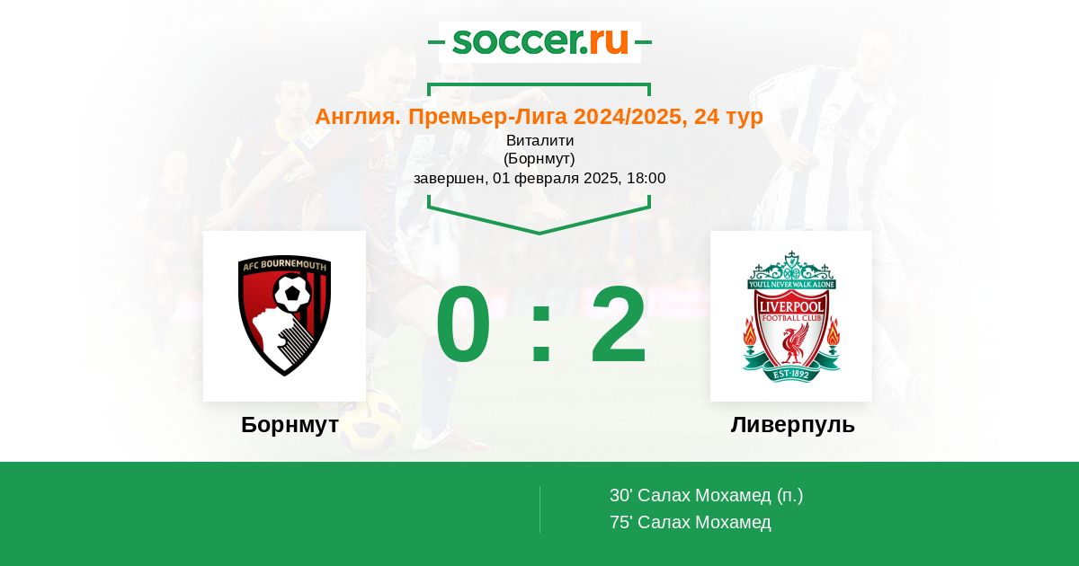 Новости матча Борнмут против Ливерпуль